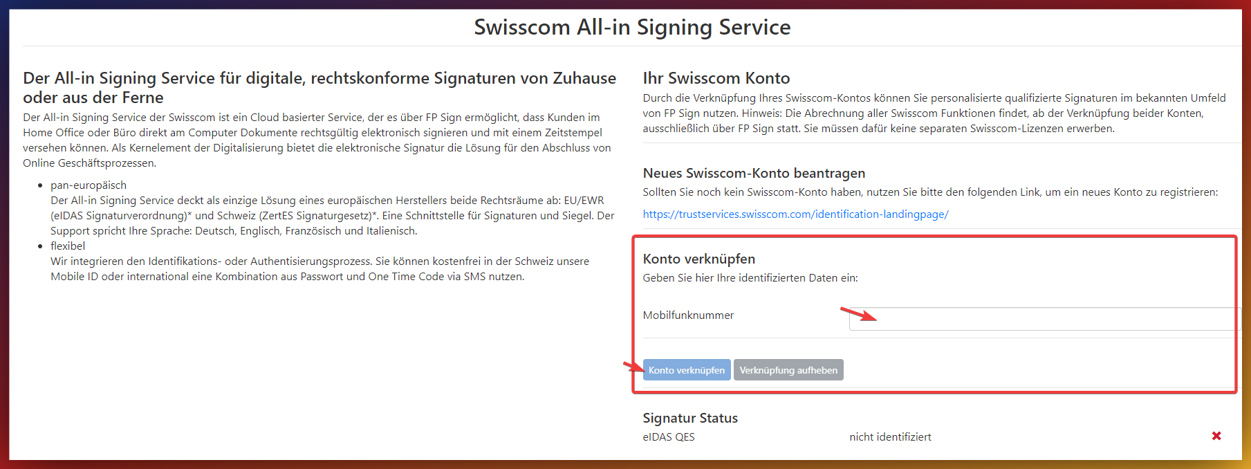Verknüpfung Ihres Swisscom-Kontos mit FP Sign