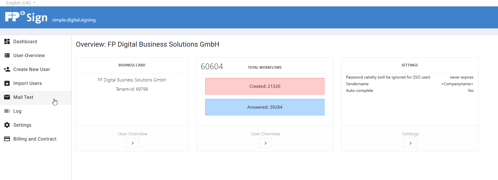 - Log in at https://admin.fp-sign.com/login